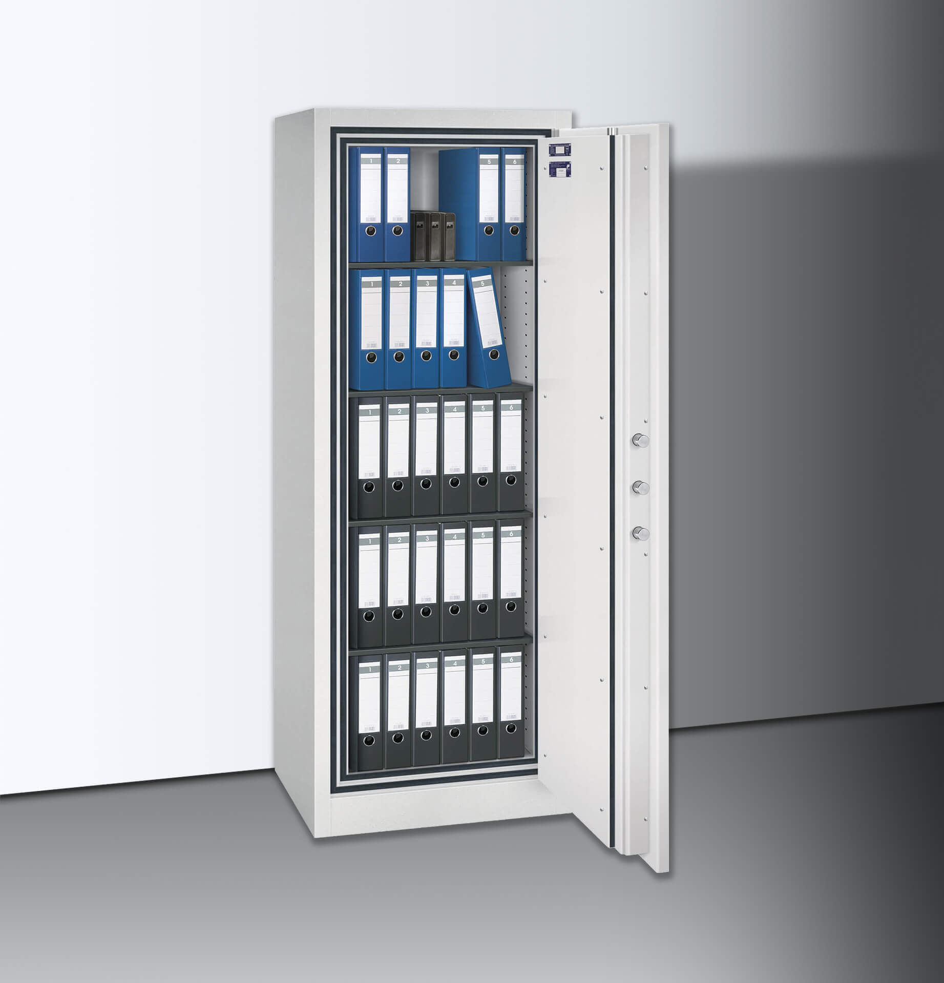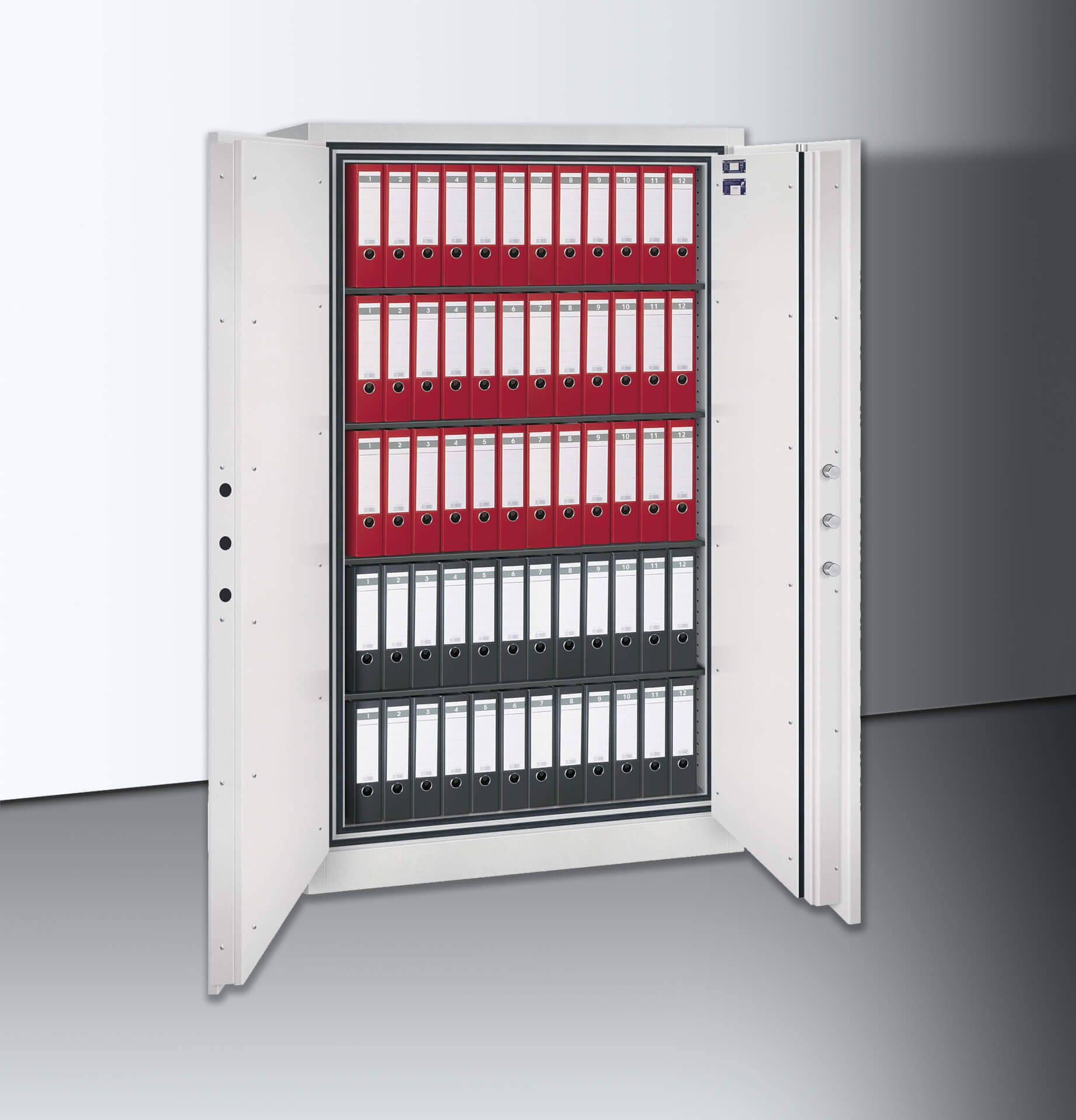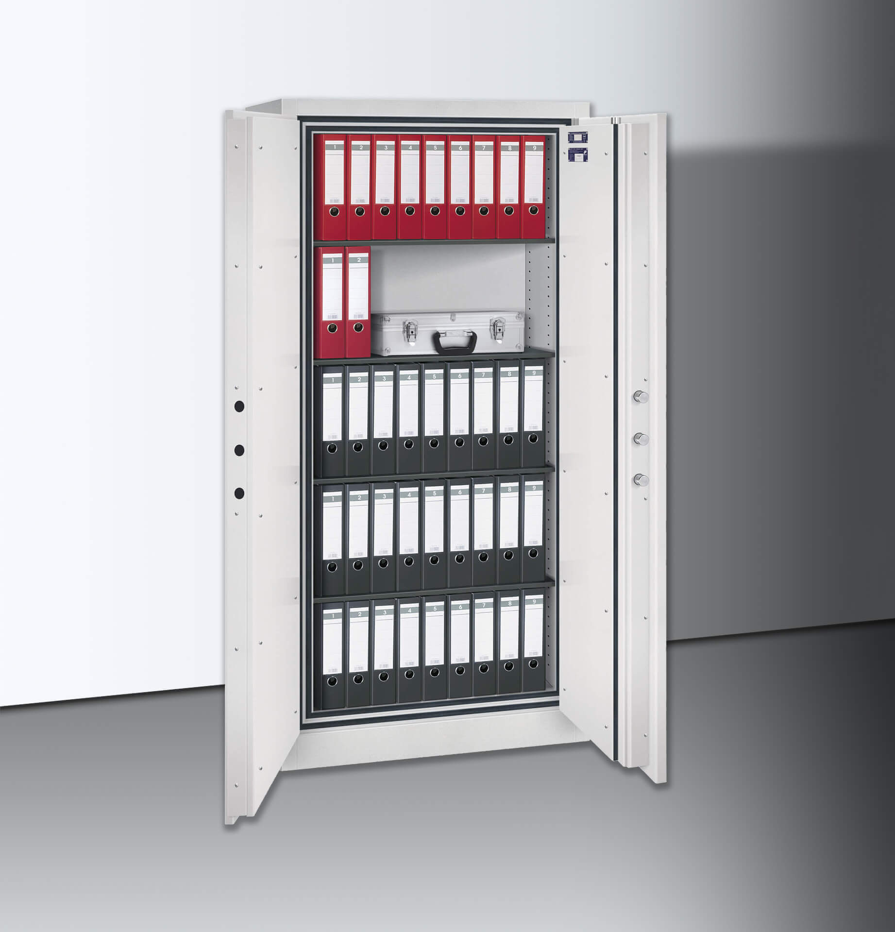 Die erhöhte Feuersicherheit sowie der zertifizierte Einbruchschutz mit dem Sicherheitsgrad 2 bewahren Ihre Unterlagen deutlich sicherer als die Basisserie.