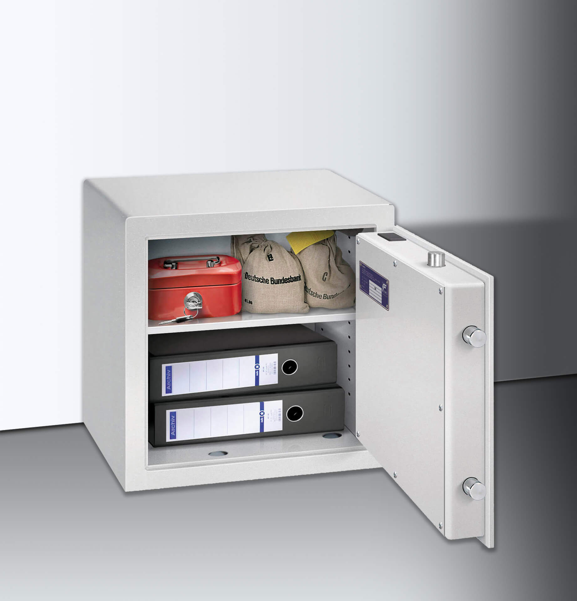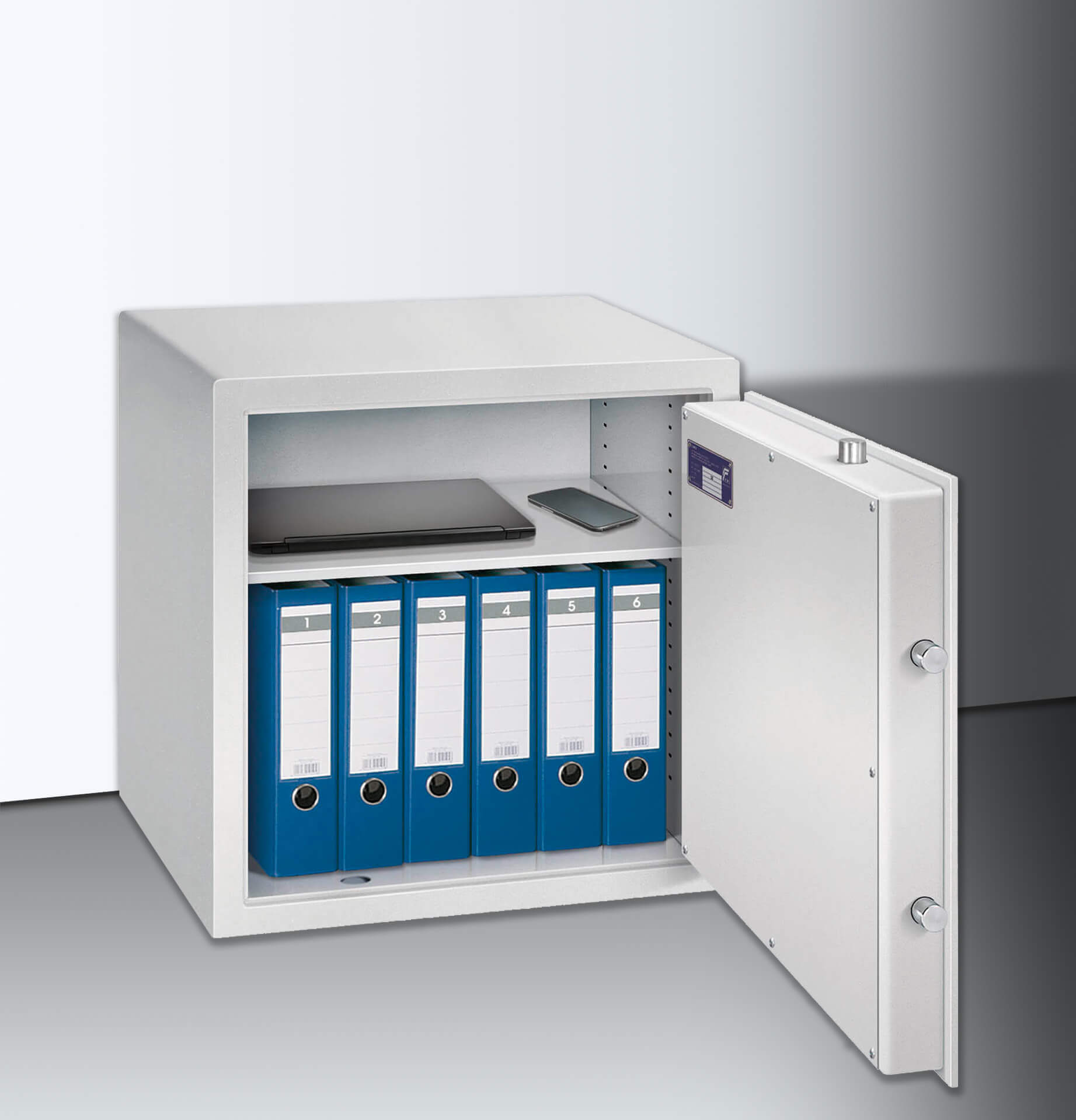Die MT-Modelle sind Einbruchsicher entsprechend der Sicherheitsklasse 2. Das bedeutet, dass sie kurzen Aufbruchsversuchen durchaus standhalten.Die durchschnittliche Einbruchdauer beträgt laut Polizei ca. 5 Minuten, doch durch die Suche nach dem Tresor reduziert sich die Zeit für einen Öffnungsversuch. Daher schützt schon die Basisserie vor unerlaubtem Zugriff im Normalfall. Eine umlaufende Feuerfalz sichert den Inhalt bei leichtem Brand.
