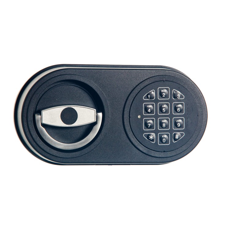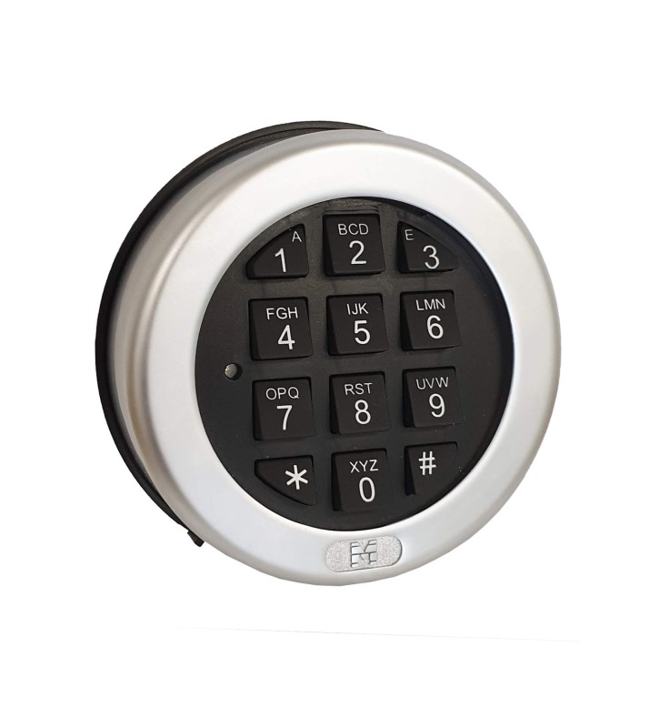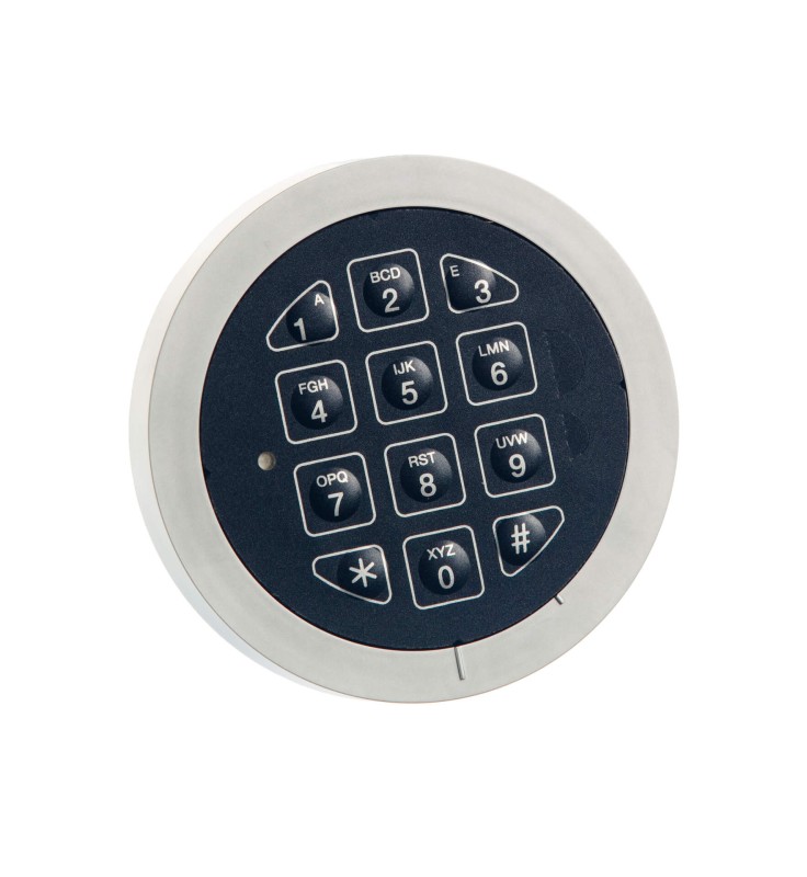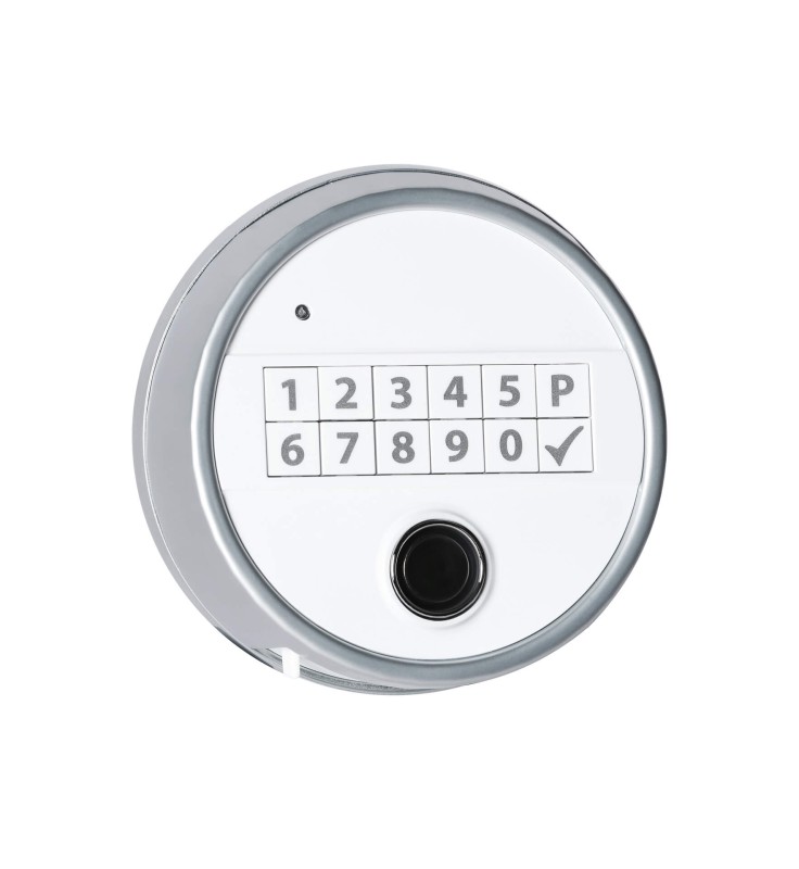 Bei der EuroLine Eingabeeinheit handelt es sich um einen kombinierten Beschlag mit Tastatur und Metall-Klappgriff. Die elektronische Eingabeeinheit verfügt über ein integriertes Batteriefach.