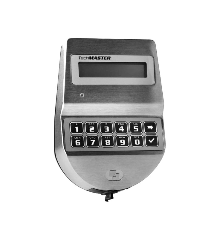 Ein Schloss für 1 Master und bis zu 90 Benutzern mit der Möglichkeit, bis zu fünf Schlösser pro Eingabeeinheit zu bedienen. Einstellbare Zeitsperre und Ereignisprotokoll mit Datum und Zeit sind selbstverständlich. Das System bietet die Wahl einer Tastatur mit oder ohne Dallas Leser und ist in Kombination mit verschiedenen Schlössern (Straightbolt, Rotobolt und Motor) lieferbar. Der TechMaster ist standardmäßig in acht Bedienersprachen lieferbar: Englisch, Deutsch, Französisch, Niederländisch, Italienisch, Ungarisch, Schwedisch und Finnisch. Weitere Features wie Einmal-Code-Generierung sind optional erhältlich.